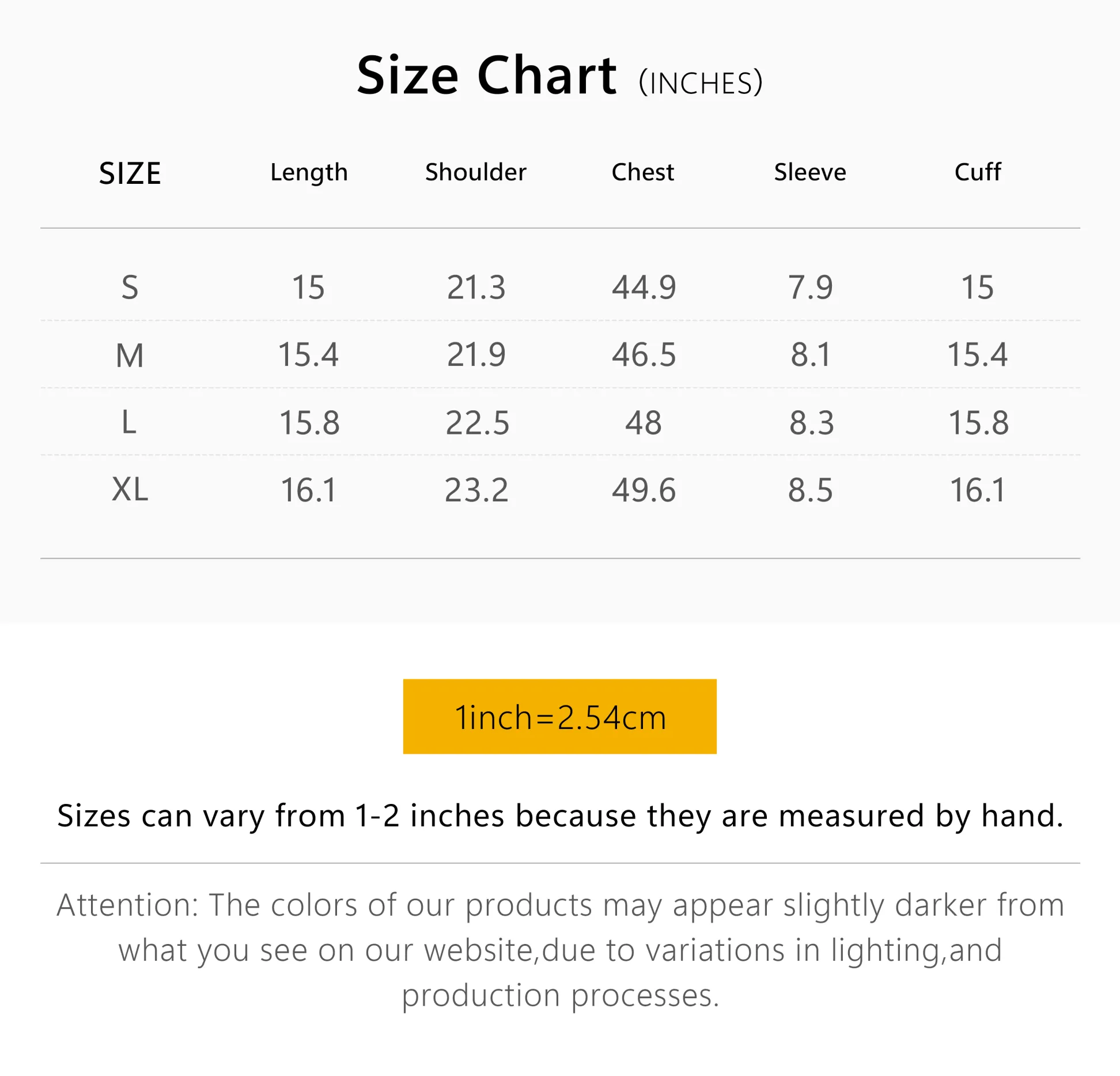 Please note that the colors of our products may appear slightly darker than shown on our website due to lighting and production variations.